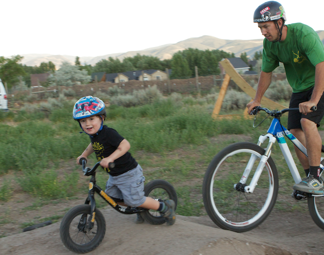 Introduce slight downhills. Speed and coasting distances will increase, sometimes dramatically. Your child has cracked it. Now, finesse their technique. Set up ‘slow races’ between you and your child. Take off your pedals too. See who can go the slowest before touching down. Low speed balancing is required for stopping and starting the bike and – later – for ‘track stands’, an excellent trick to learn at an early age.