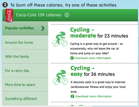Coke plugs cycling in calculator that works out calories cancelled per can