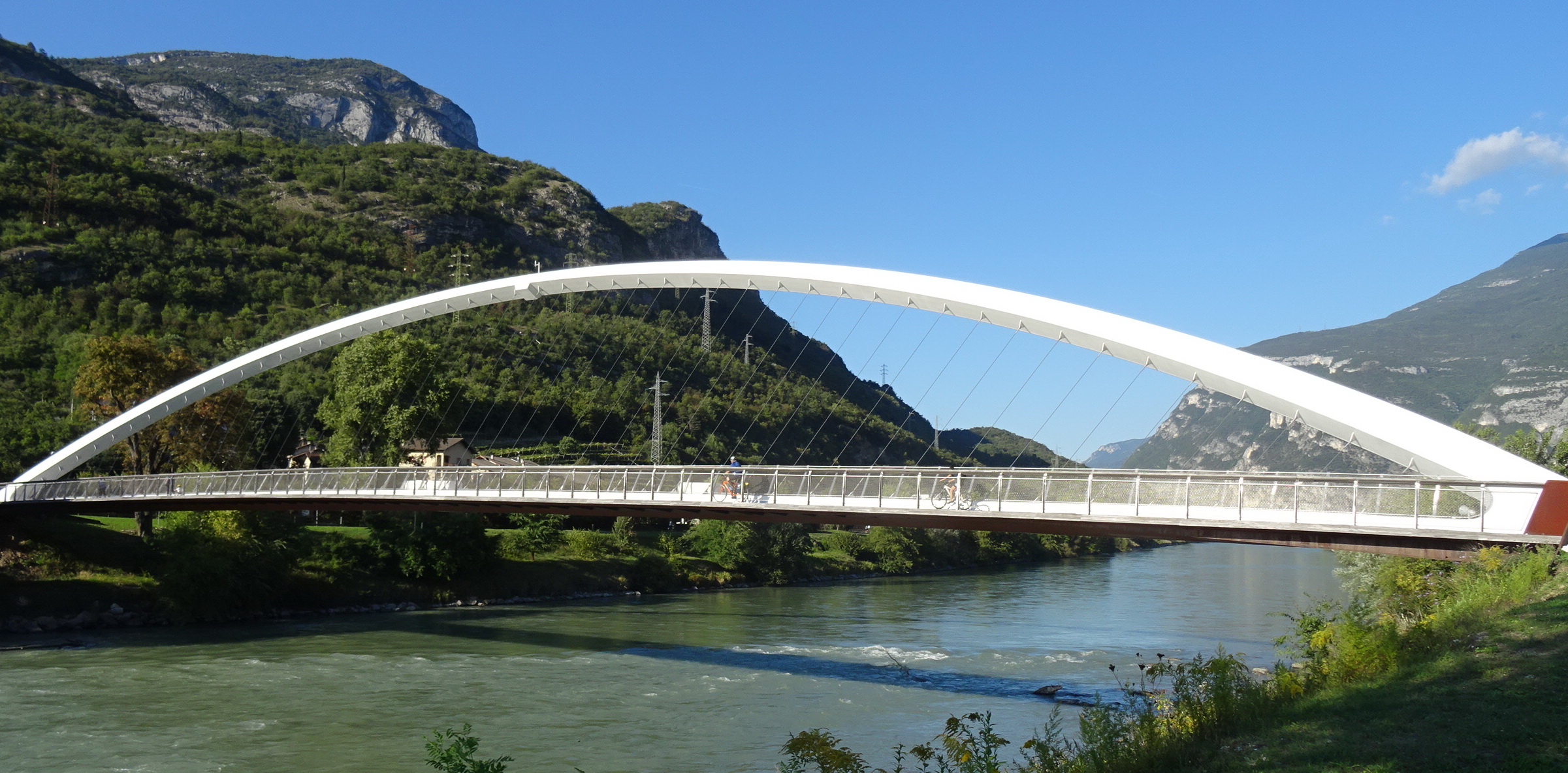 On the Adige route approaching Trento we came across 3 new bridges of a very high quality, two of them attached to road bridges but of sufficient character and flair to make us feel that we were indeed special as cyclists.