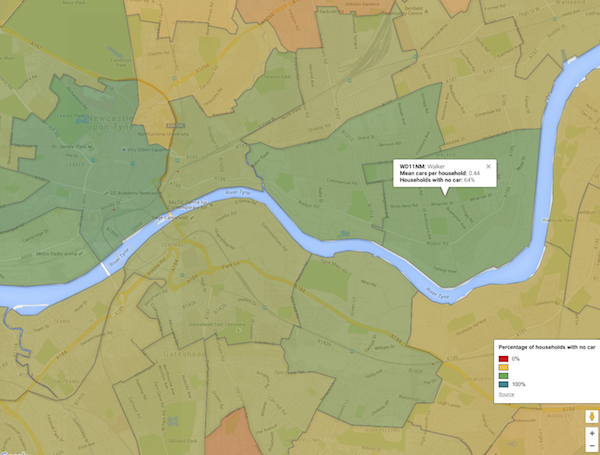 04/01/2016 AdvocacyA new map-and-data merge vividly demonstrates that many urban areas in England and Wales have electoral wards where the majority of people don’t own cars. Some wards in London, Newcastle and other cities have car-ownership of less than 30 percent yet local and national governments continue to plough money mainly into facilities for motorists.
