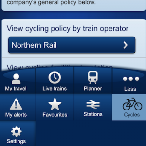 09/10/2013 AdvocacyThe Association of Train Operating Companies’ has worked with National Rail Enquiries to upgrade its app – available free for iPhone and Android – so that people planning to cycle to a rail station or take their bike on a train can get the information they need in a couple of clicks.